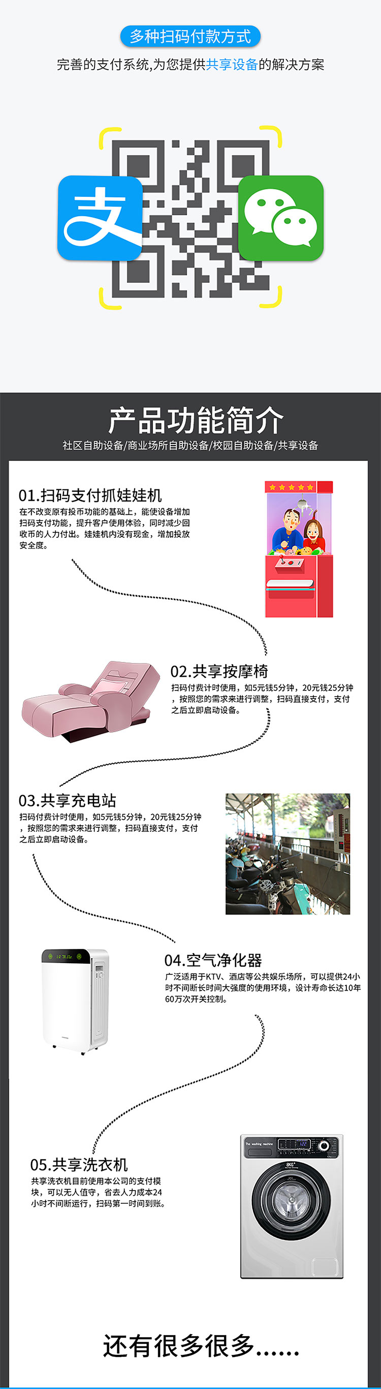 社區(qū)自助設備、商業(yè)場所自助設備、大學校園自助設備、各類共享設備等